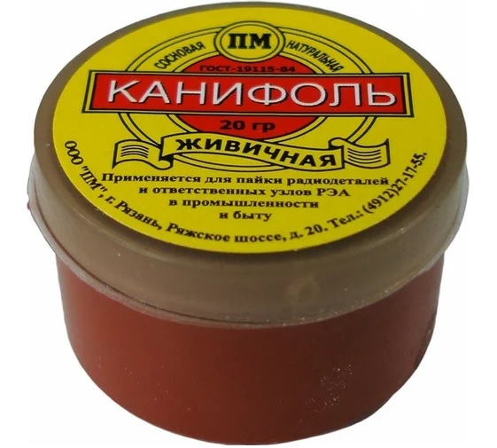 Канифоль применяется при пайке. Благодаря использовании канифоли происходит разъедание окислов металлов, улучшается растекание оловянных припоев благодаря чему происходит более качественная спайка металлов.