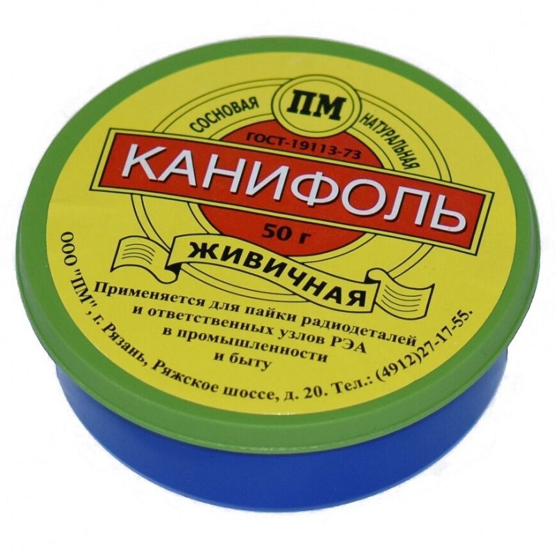 Канифоль применяется при пайке. Благодаря использовании канифоли происходит разъедание окислов металлов, улучшается растекание оловянных припоев благодаря чему происходит более качественная спайка металлов.
