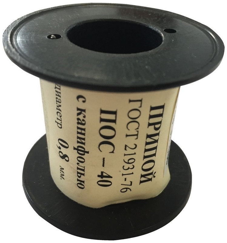 ПОС-40 d=0.8мм, Припой в катушке c канифолью 50г