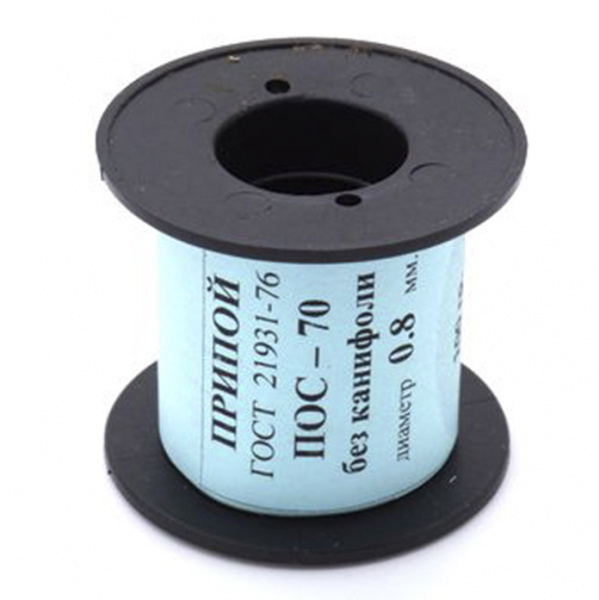 Припой оловянно-свинцовый ПОС-70, предназанчен для пайки латуни, жести, электропроводов.Состав: олово - 70%; свинец - 30%.