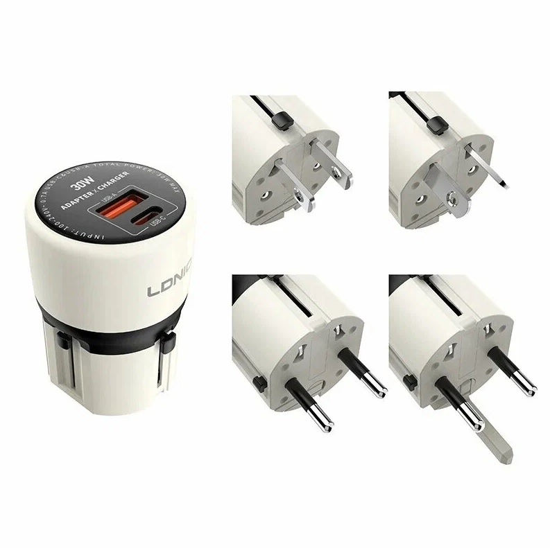 Сетевое зарядное устройство для путешествий LDNIO - быстрая зарядка 30Вт, универсальная вилка для разных стран, с кабелем (Type-C - Type-C) в комплекте