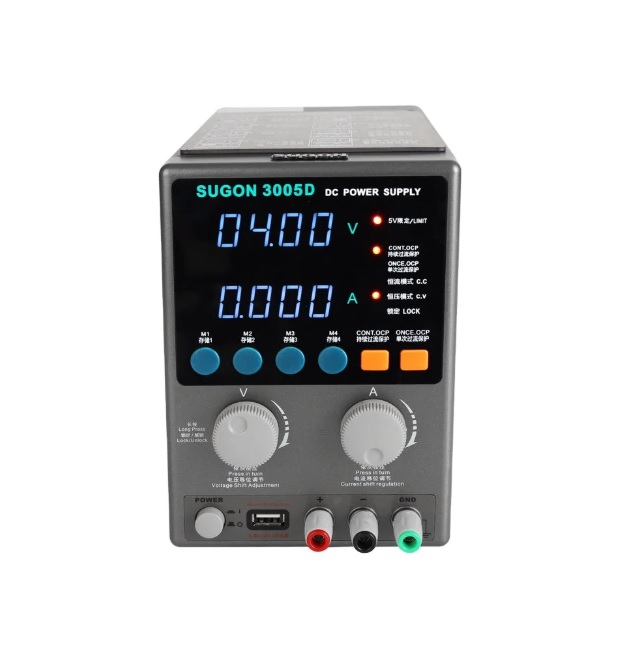 Лабораторный блок питания Sugon 3005D это высокоточный линейный источник питания с высокой разрешающей способностью. Предназначен для работы с различными устройствами. Он сочетает в себе высокую мощность, компактные размеры и автономность, что делает его идеальным выбором для профессионалов в области ремонта мобильной техники. Имеет низкий уровень шума и пульсаций, обеспечивающий стабильную работу чувствительных устройств. Простое и интуитивное управление с раздельными энкодерами для регулировки тока и напряжения. Предусматривает защиту от перенапряжения и короткого замыкания.